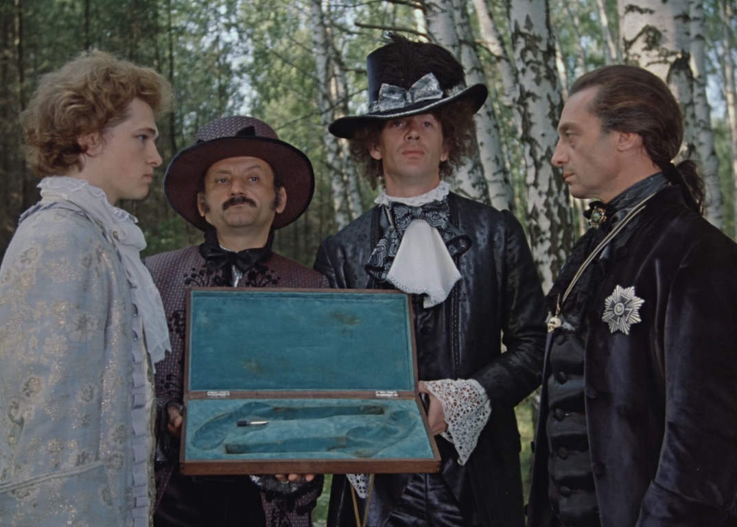 Стоит сказать еще об одной главной героине фильма – мраморной статуе, которую и хотел оживить при помощи Калиостро помещик Федяшев. Это одна из авторских копий «Одалиски Суламитиды» итальянского скульптора Паскуале Романелли второй половины XIX века.